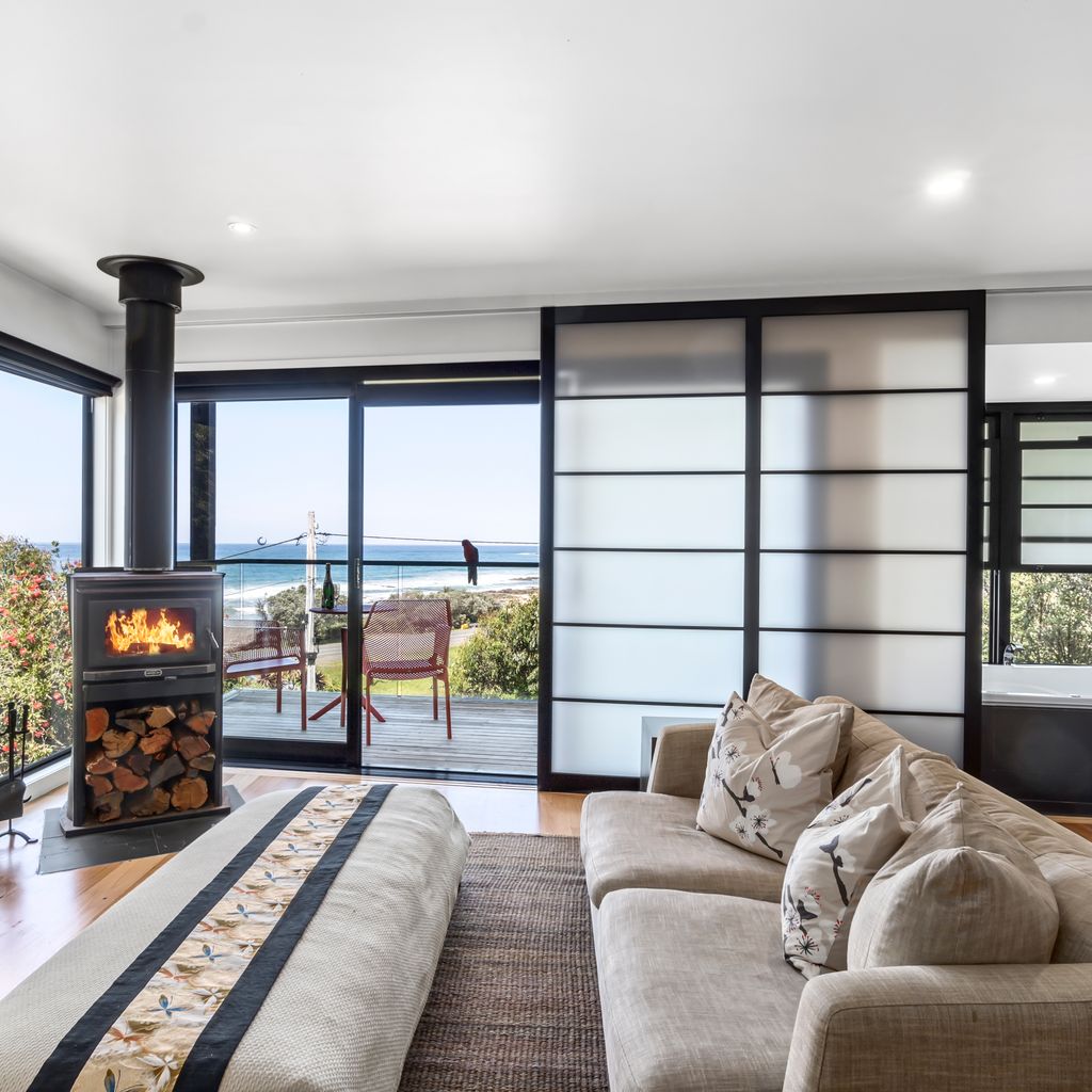 Sea Zen is a seaside studio, with ocean view spa, steam shower and wood fire. A retreat inspired by Japanese elements, designed for couples who want the ultimate romantic getaway at Wye River on the Great Ocean Road. Sea Zen is pet friendly for dog lovers too.